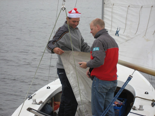 We zijn zo blij als kleine kinderen en maken in de koude ochtend mist een dansje van plezier. Dat hadden we beter niet kunnen doen, spontaan zakken we door twee van de vier houten vlonders heen.... Het eerste gedeelte van de tocht leidt ons naar het gemaal Cruquius naar Bennebroek, Hillegom en Lisse naar de Kaag. Eenmaal op de kaag aangekomen, leggen we snel aan en hijsen voor de eerste keer de zeilen.